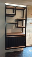V prosinci roku 2023 jsme do kuchyně zhotovili skříňku s železnou konstrukcí a šoupací roletou.